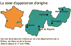 La zone de production de la Noix de Grenoble s’étend de la vallée de l’Isère, de Montmélian, en Savoie, jusqu’à Romans, aux portes de la vallée du Rhône, en passant par Tullins, Vinay, Saint-Marcellin et Pont-en-Royans, citées historiques de la noyeraie dauphinoises.