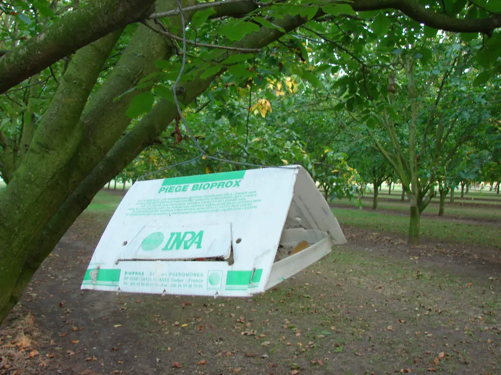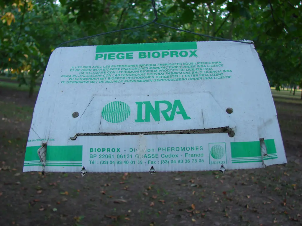 Courant du mois, nous réalisons un traitement contre la maladie de la bactériose à base d’un produit biologique (le cuivre), et nous installons aussi des pièges pour contrôler les populations de carpocapses (cidiapomonella) en vue de déterminer si le positionnement d’un traitement est justifié ou non.